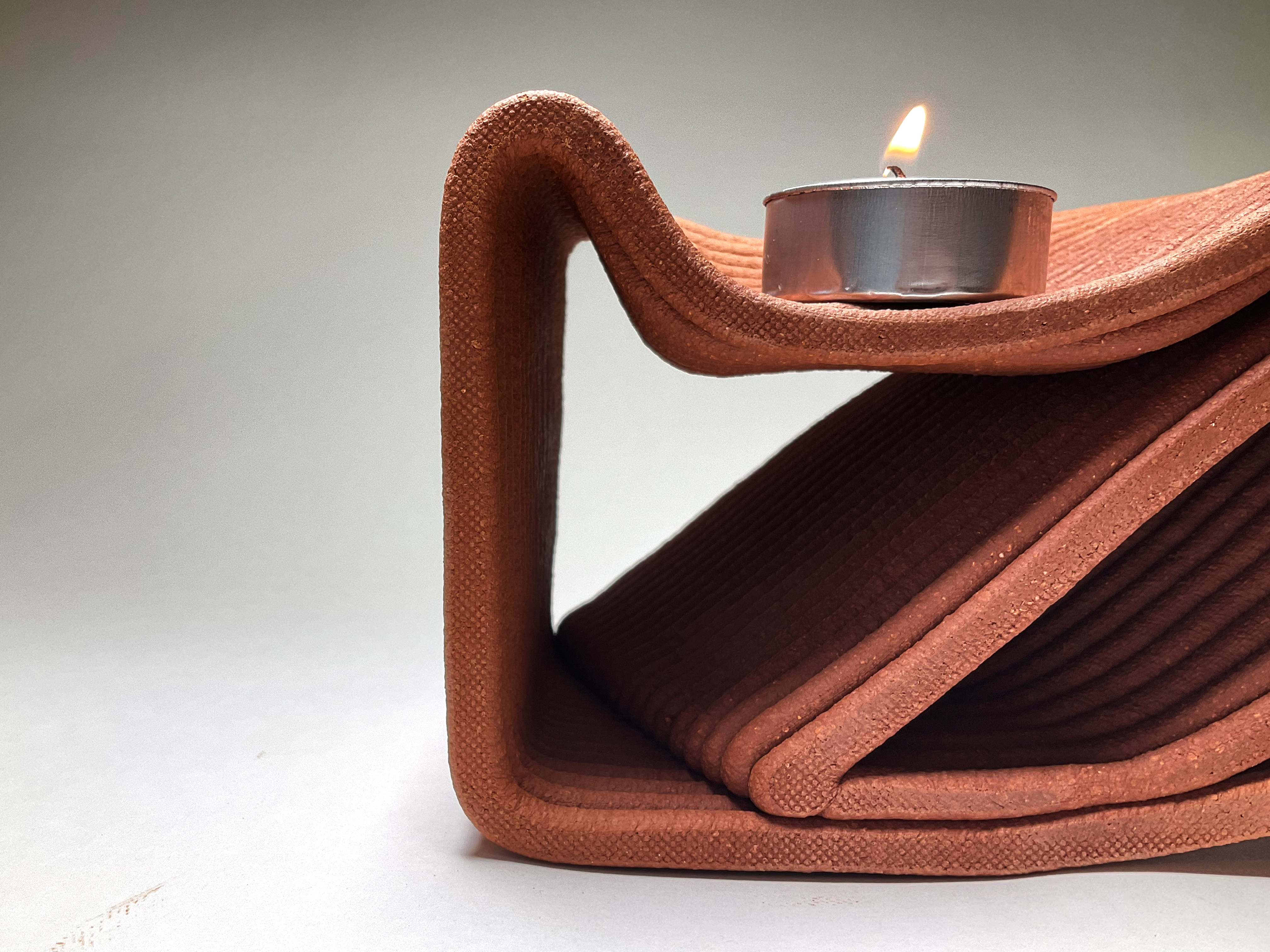a double-sided wall for a scented candle retail store, which functions as both storage shelves and a collector of scent and light. This design responds to invisible environmental energies such as fragrance and temperature.